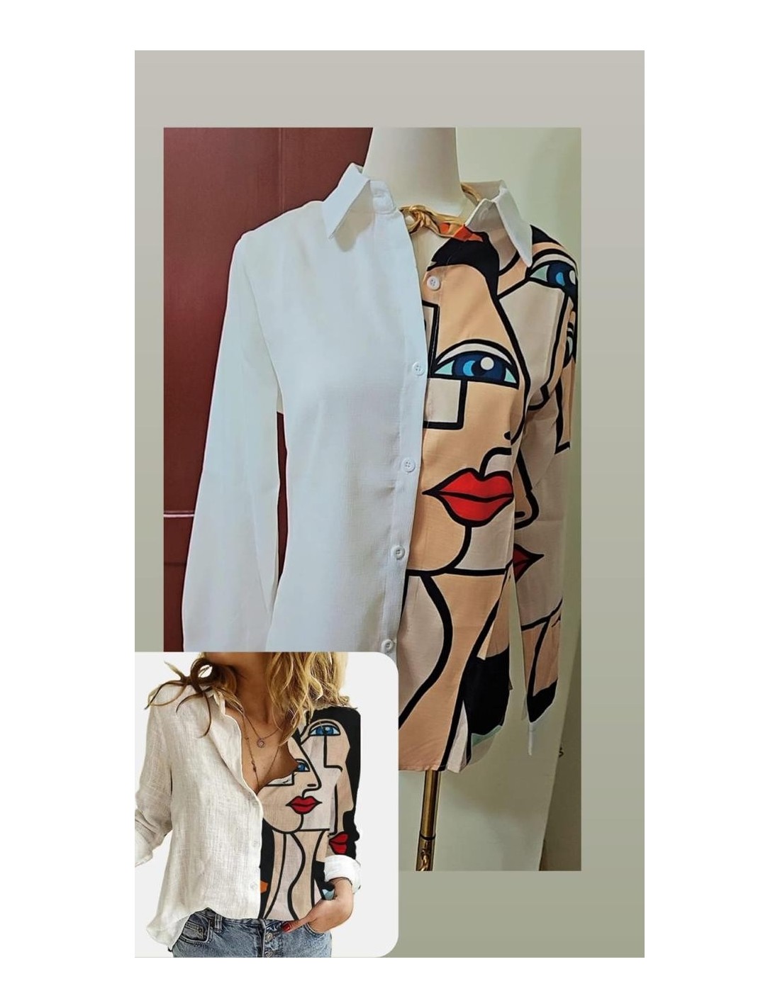 camisa bordada en tonos beige y burdeos es una prenda elegante y distintiva que añade un toque artístico a cualquier atuendo.