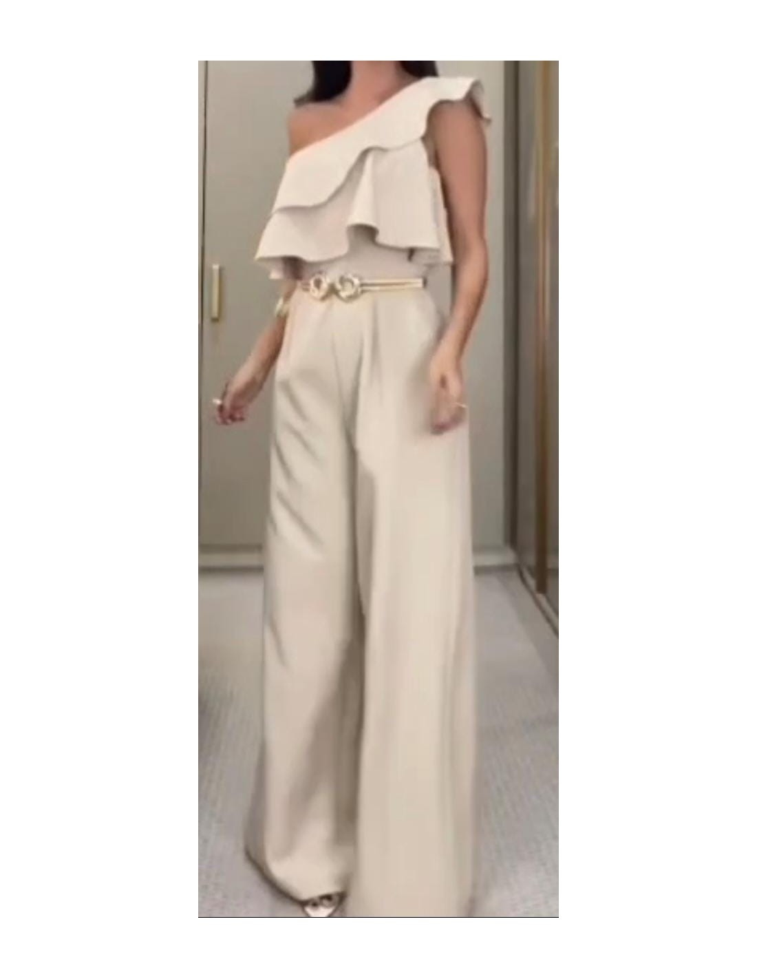 *Bajo pedido de 5 - 6 dias hábiles* Este enterizo blanco de un solo hombro combina elegancia y estilo. Su diseño drapeado en la cintura realza la figura, y las piernas fluidas aportan comodidad y movimiento, ideal para eventos especiales.