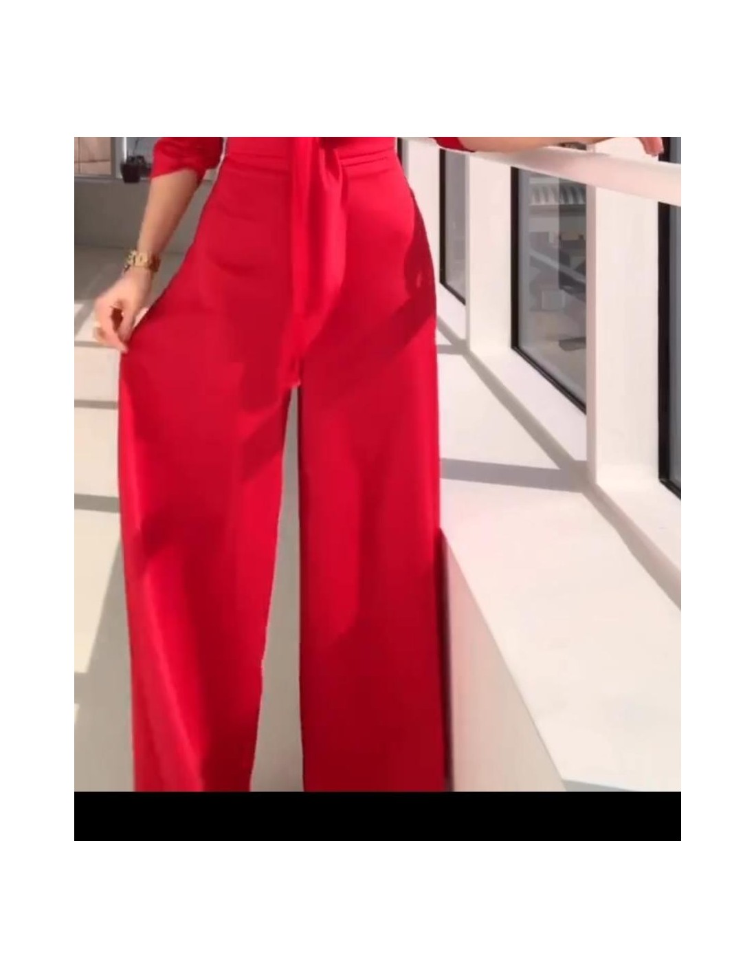 Pantalón blanco de licra estilo palazzo, con una silueta amplia y líneas en la parte de la cintura que aportan un toque moderno y elegante. Ideal para ocasiones casuales o semi-formales.