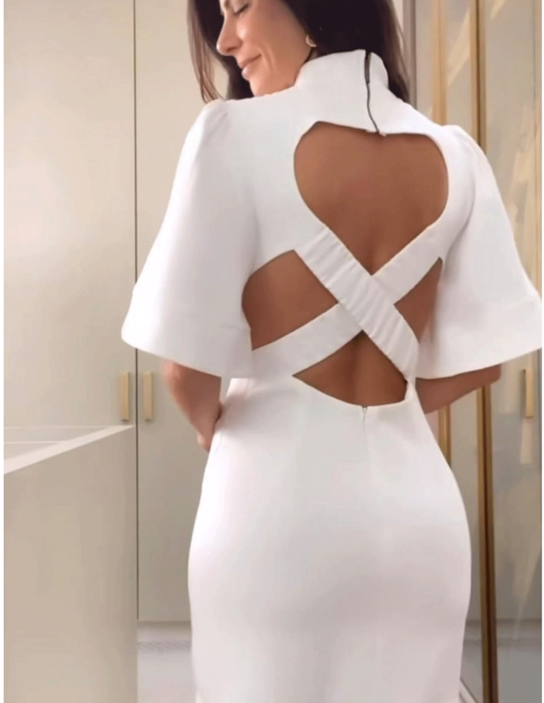 *Bajo pedido de 5 - 6 dias hábiles* El vestido blanco es ajustado y destaca por su espalda descubierta, añadiendo un toque atrevido. Su diseño sencillo y favorecedor lo hace ideal para ocasiones especiales, complementándose bien con tacones y accesorios elegantes.