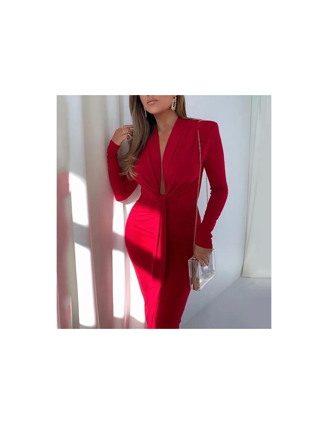 El vestido largo rojo presenta un corte elegante con mangas largas y un escote en forma de V que acentúa el pecho. Su diseño ajustado resalta la figura, mientras que la tela fluida permite un movimiento cómodo. Este vestido es perfecto para eventos formales o celebraciones, combinando un estilo clásico con un toque de sensualidad. Ideal para quienes buscan destacar con confianza y sofisticación.
