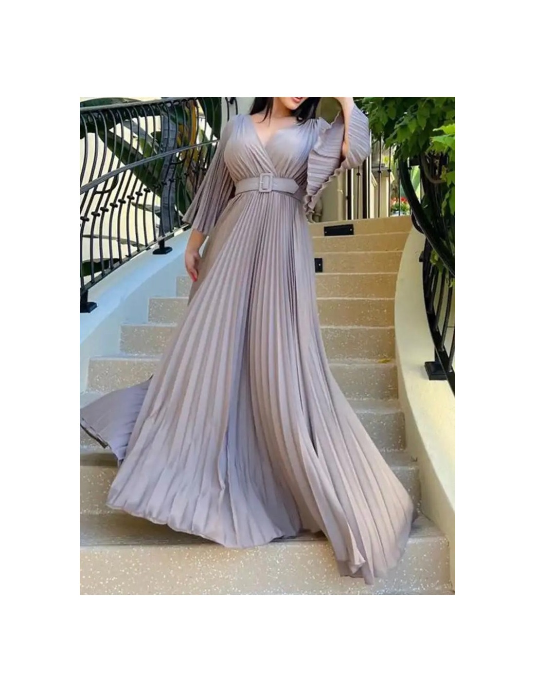 Vestido holgado de manga larga a con cuello en v