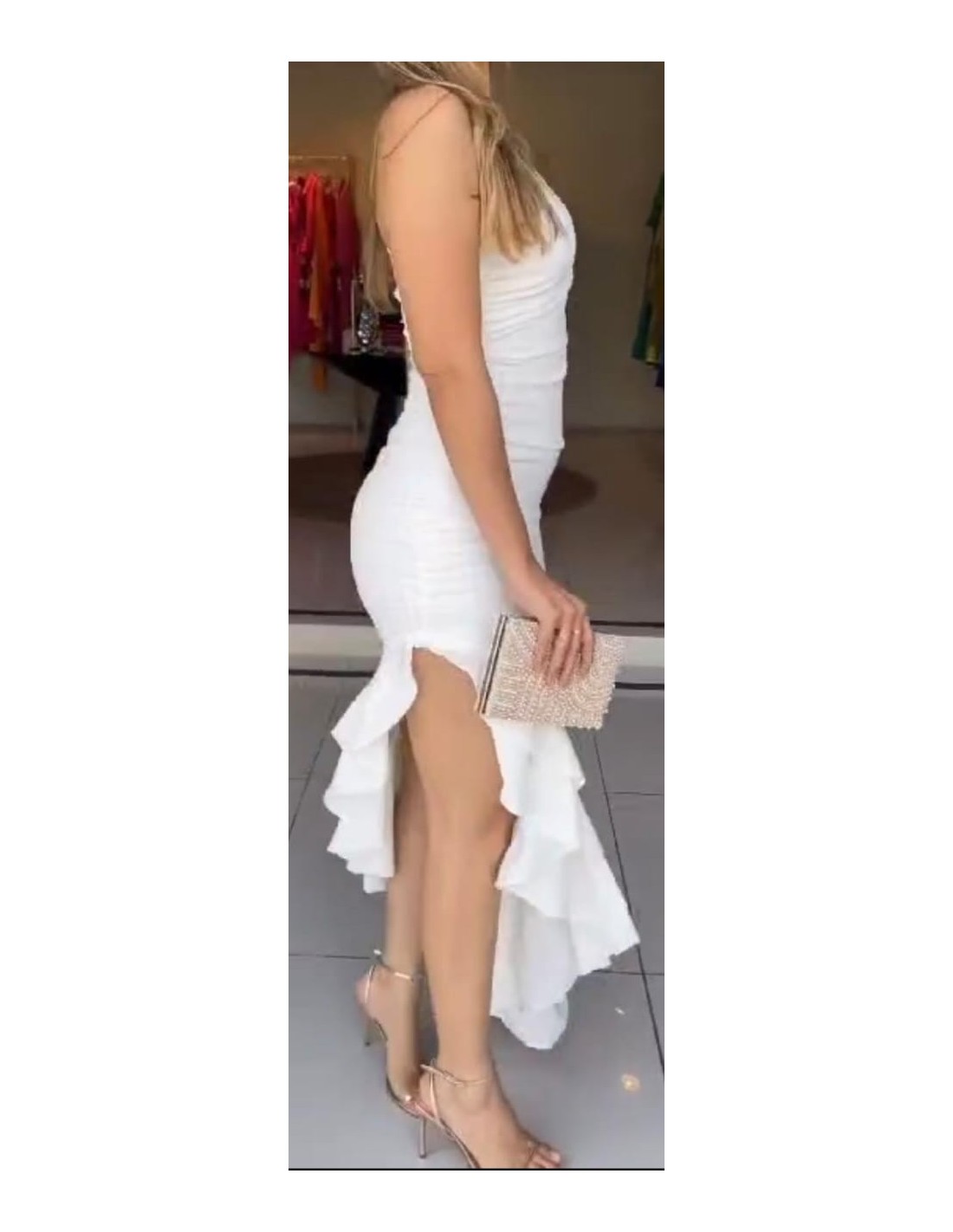 *Bajo pedido de 5 - 6 dias hábiles* Este vestido , con escote en V, drapeado y una abertura alta en la pierna, es elegante y sensual, ideal para eventos formales.