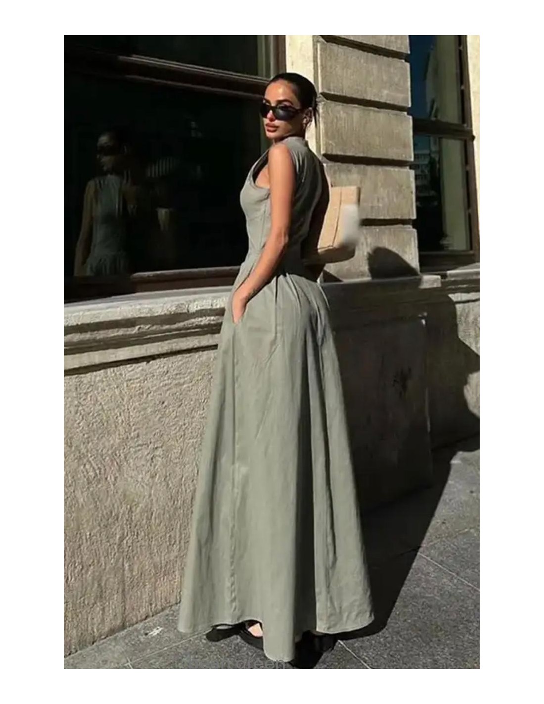 El vestido verde largo sin mangas presenta un diseño sofisticado y versátil, ideal para eventos formales o salidas nocturnas. Cuenta con un cierre frontal en la parte del pecho que añade un toque moderno y funcional, permitiendo ajustar el escote según la ocasión. Su corte recto y fluido resalta la figura de manera elegante, mientras que el color negro clásico aporta una sensación de refinamiento y atemporalidad. Este vestido es una opción perfecta para quienes buscan una prenda minimalista pero impactante, que pueda ser complementada fácilmente con diversos accesorios.