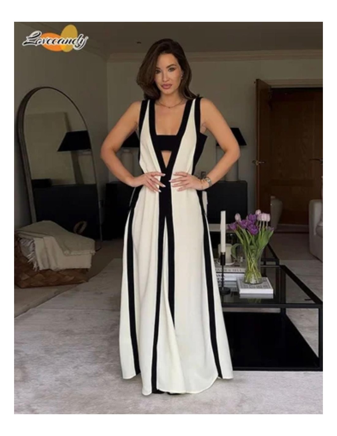 *Bajo pedido de 20 dias habiles* Vestido Largo Bicolor Escote V