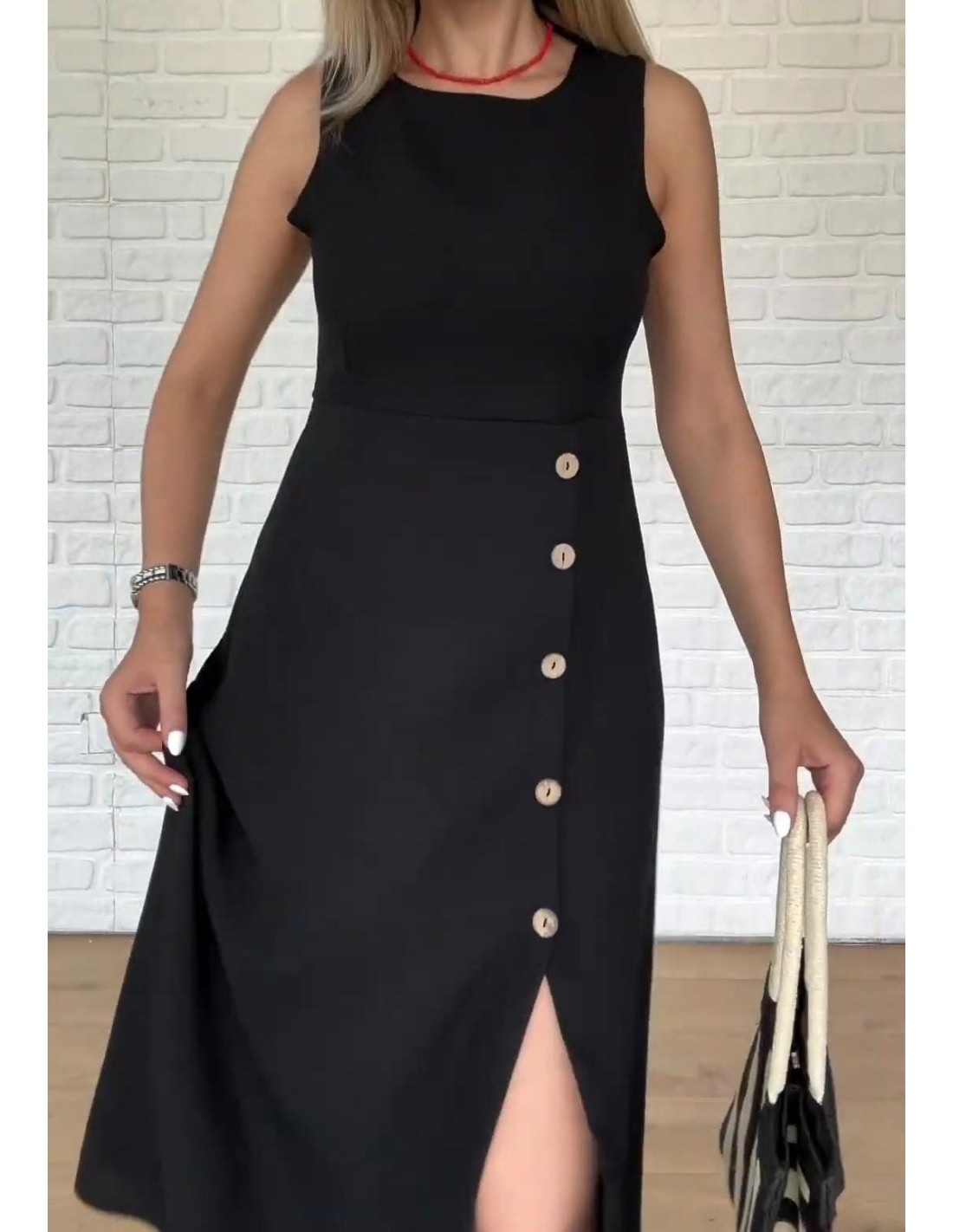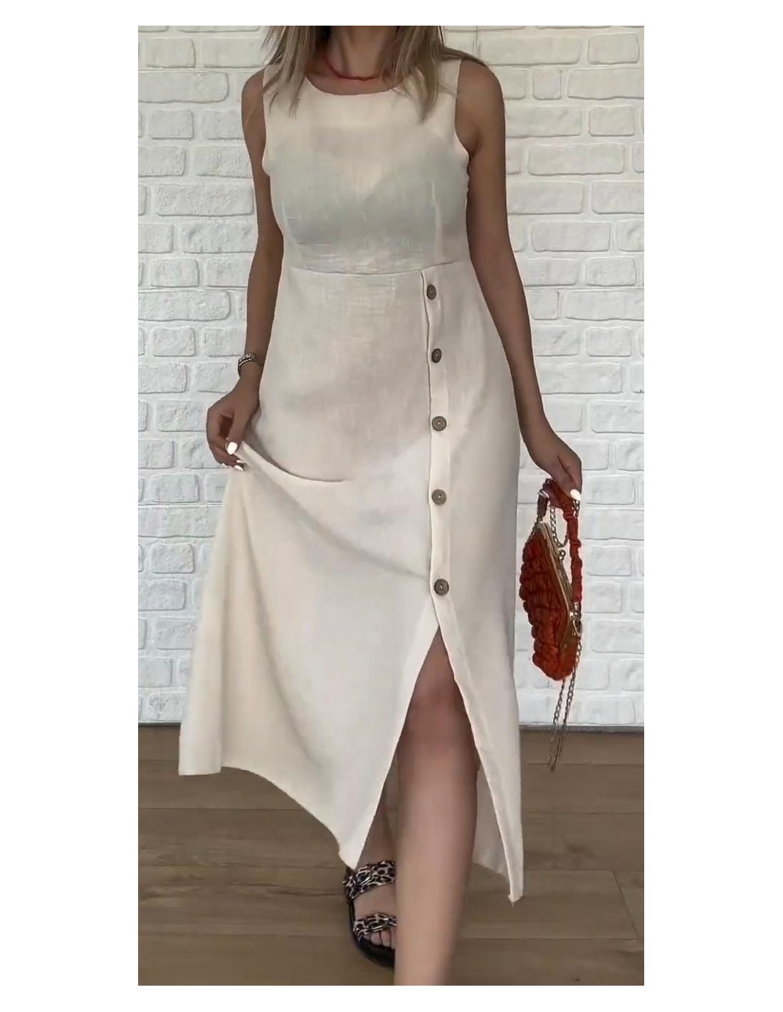 Vestido Midi ligero de lino con Botones delanteros sin Mangas con abertura en la parte lateral con Dobladillo Dividido su tamaño es perfecto para esa ocasión especial está hecho de tela de alta calidad, ofreciendo la máxima comodidad y un ajuste delgado, por lo que es imprescindible para tu armario.