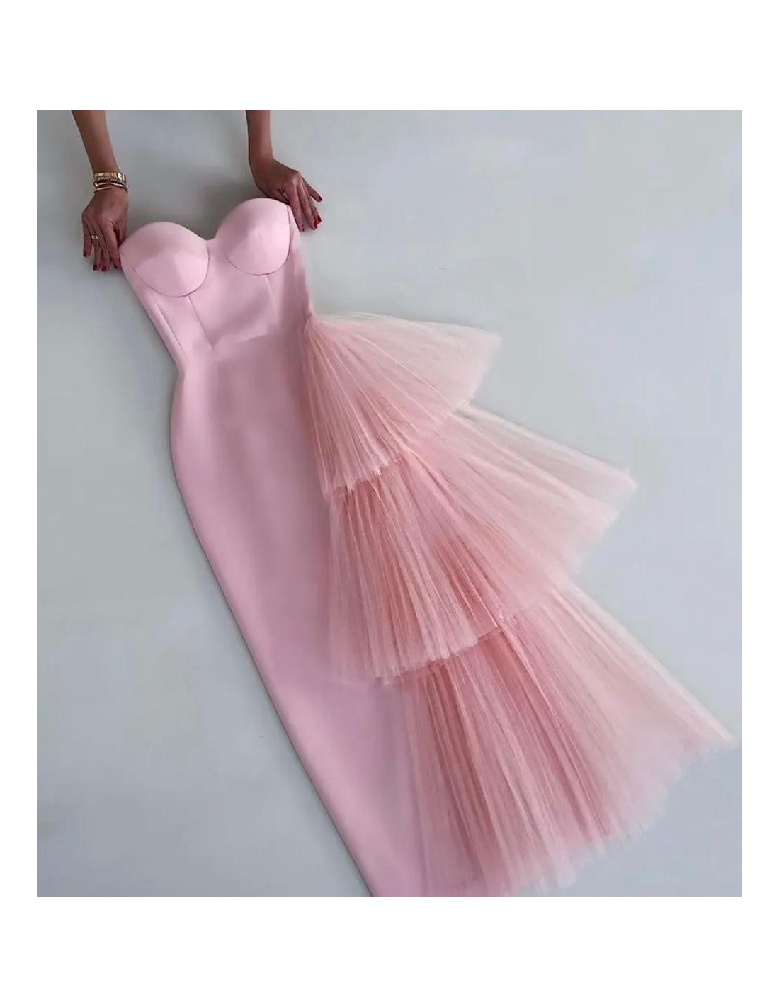Vestido Rosa ajustado al cuerpo, hecho de tela bandage, es una prenda sofisticada y llamativa. El material bandage, conocido por ser elástico y de soporte firme, se adhiere al cuerpo como una segunda piel, realzando las curvas de manera definida y estructurada. El color celeste añade un toque de frescura y suavidad al diseño, haciendo que el vestido luzca elegante y delicado. El escote puede ser de varios tipos, como corazón, en V, o recto, y las mangas pueden ser desde sin tirantes hasta mangas largas, dependiendo del estilo.