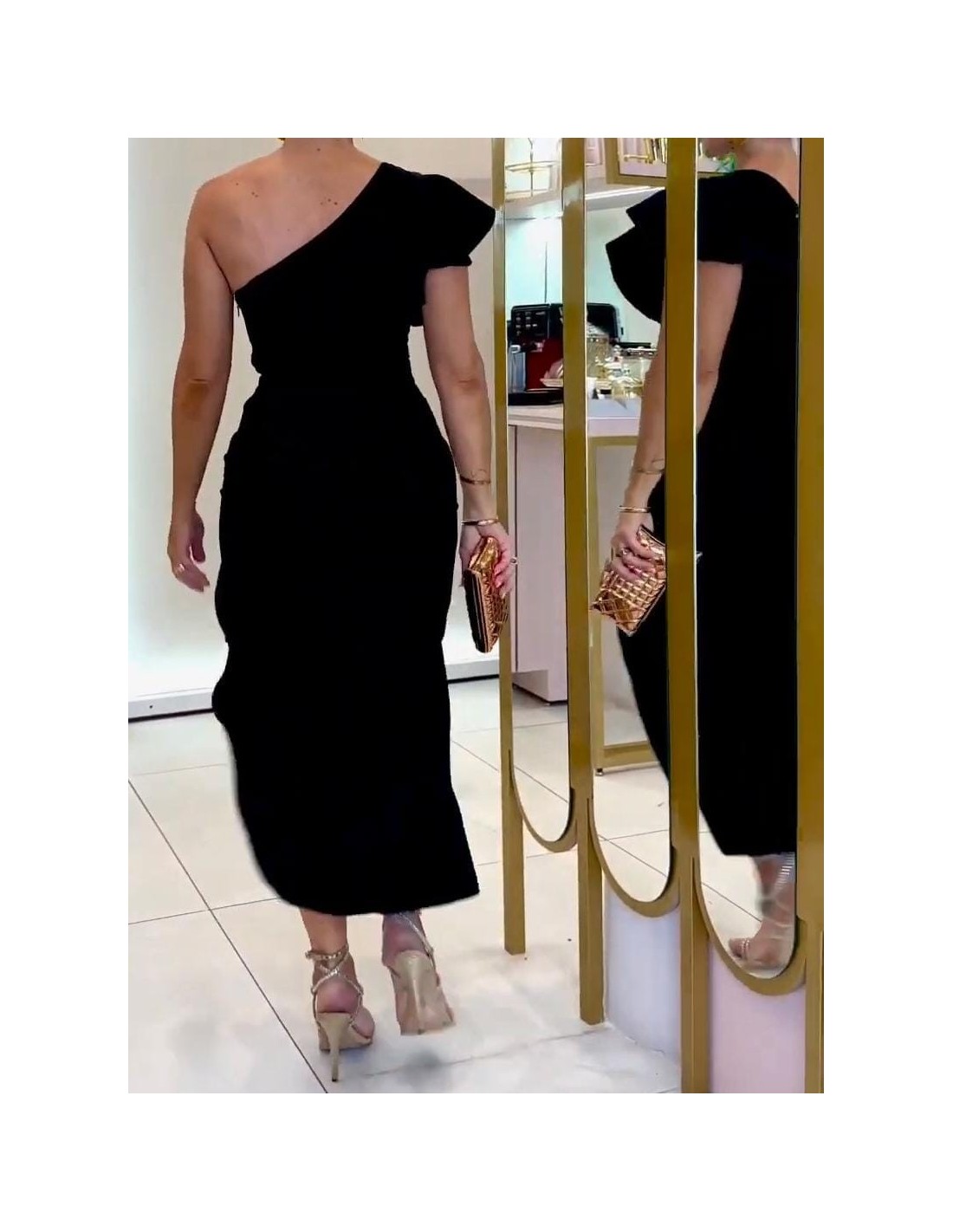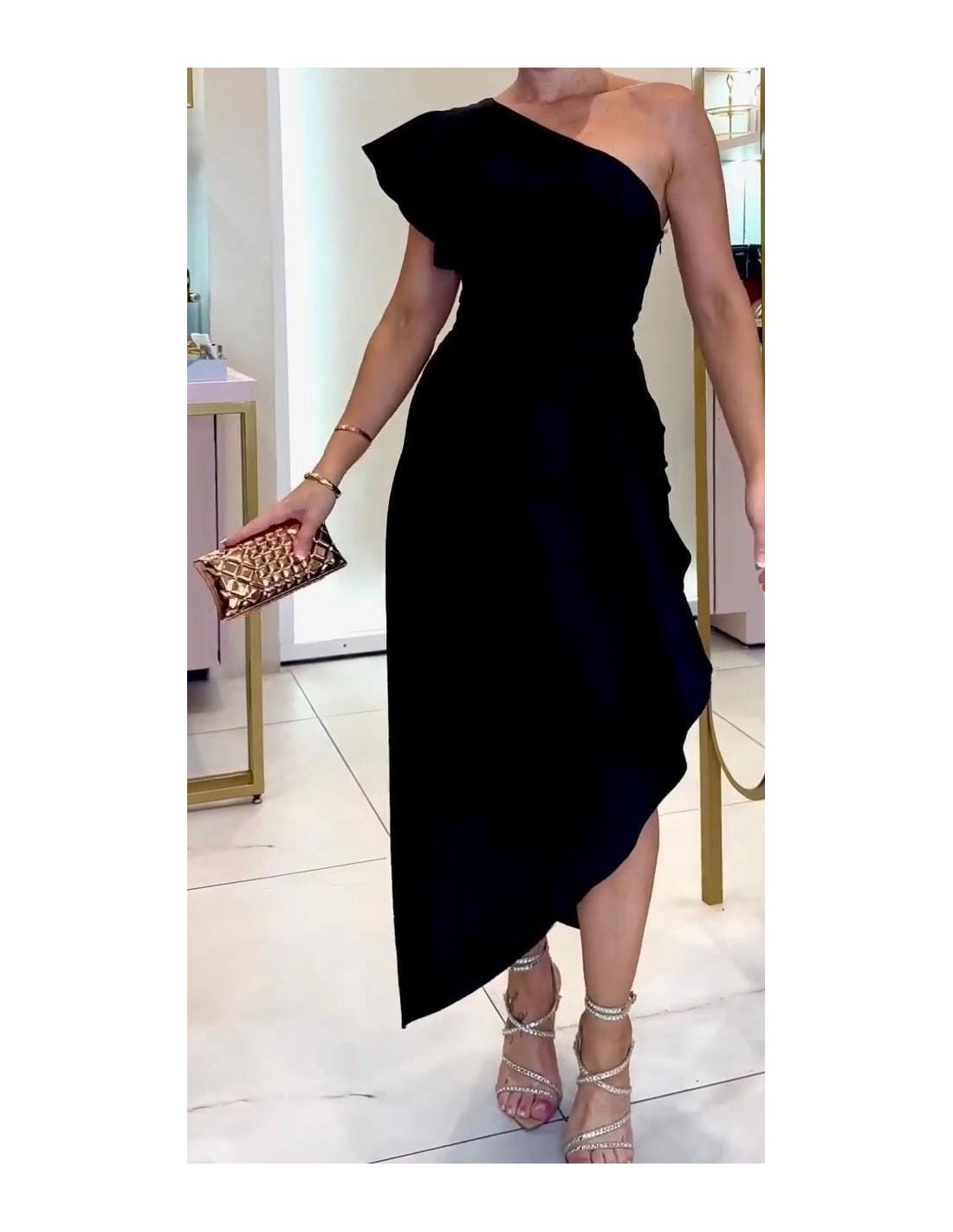 *Bajo pedido de 5 - 6 dias hábiles* Este elegante vestido negro de un solo hombro presenta una falda larga con una abertura lateral, combinando estilo sofisticado y sensual. Perfecto para eventos formales.